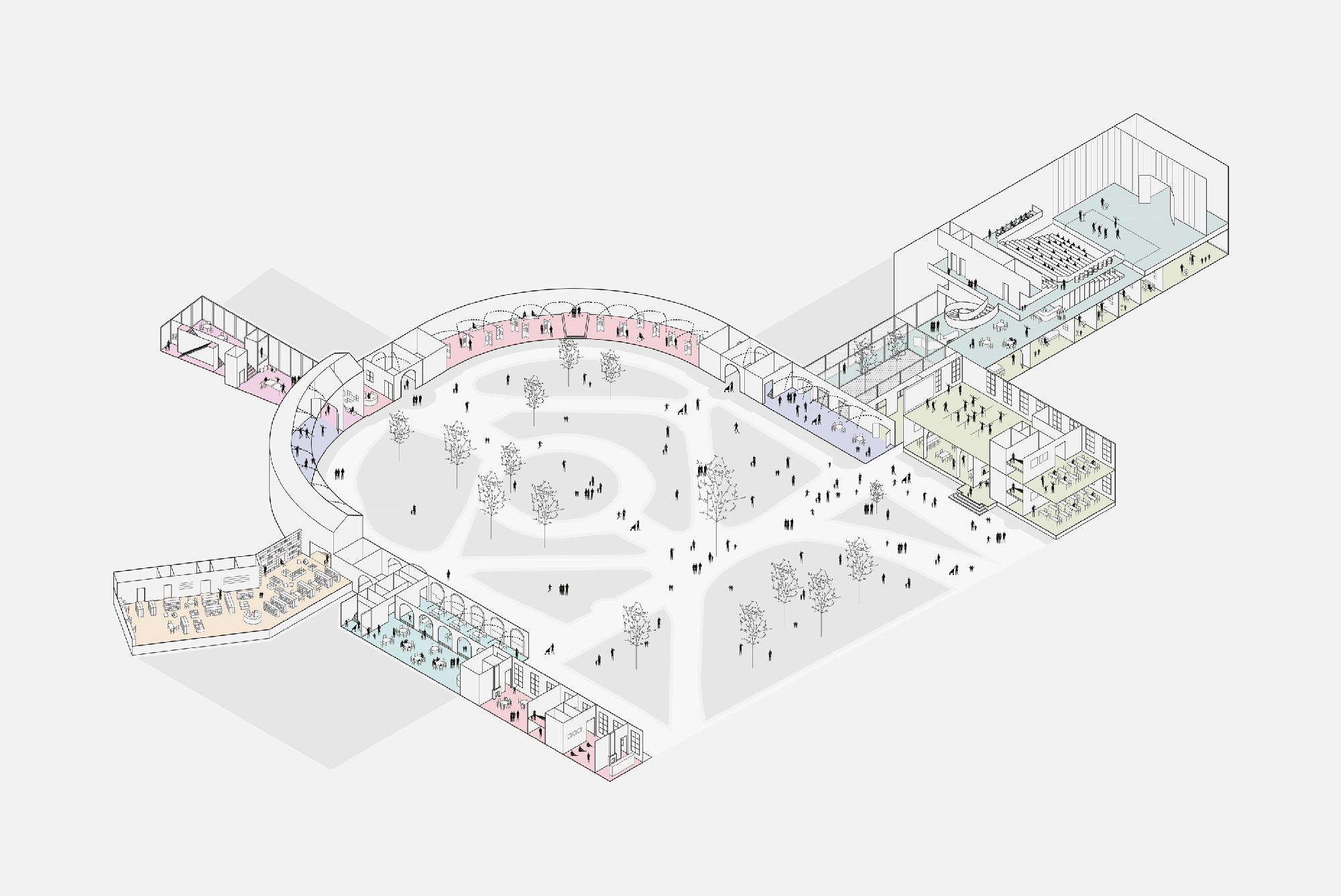 Au cœur du site de l’abbaye de Forest, l’intervention tire parti des qualités typologiques et paysagères du lieu pour y inscrire un pôle culturel qui soit un véritable troisième lieu offert aux pratiques artistiques qui s’y déploient.
