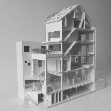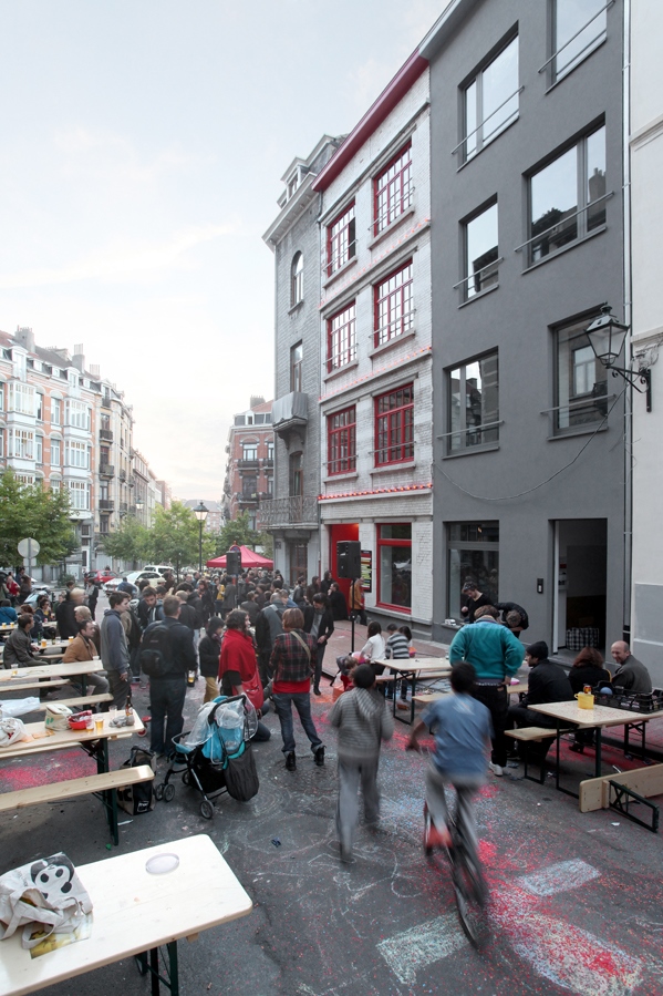 Ouest a réalisé la rénovation et extension du siège existant à Saint-Gilles (à l'origine le rez et premier étage d'un seul immeuble), situé dans un quartier dense et parcelles très construites. Composé à présent d'un immeuble neuf attenant et complémentaire au bâtiment existant complètement rénové, Les Ateliers Claus offrent une vitrine d'exposition, deux salles de spectacle, un bar avec atrium, des loges pour artistes et trois logements.