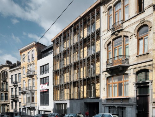 Contrat de Quartier Malibran / Ensemble de 12 logements de 1 à 4 chambres, à caractère social, répartis dans 2 bâtiments de construction passive - quasiment autonome d'un point de vue de consommation énergétique. Intégration architecturale dans une rue de type "Art Nouveau".