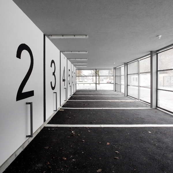 Son emprise au sol est minimisée pour libérer des espaces pour les parkings et créer une terrasse couverte pour le commerce-horeca.